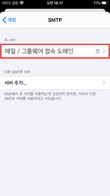 - 추가된 계정을 탭한 후 하단에 있는 "SMTP"를 탭합니다.