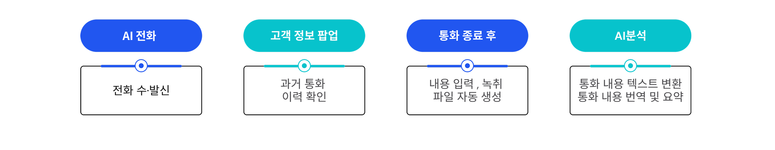 - 전화 수 · 발신 시 담당자의 PC 팝업 창에서 AI 전화 저장된 고객의