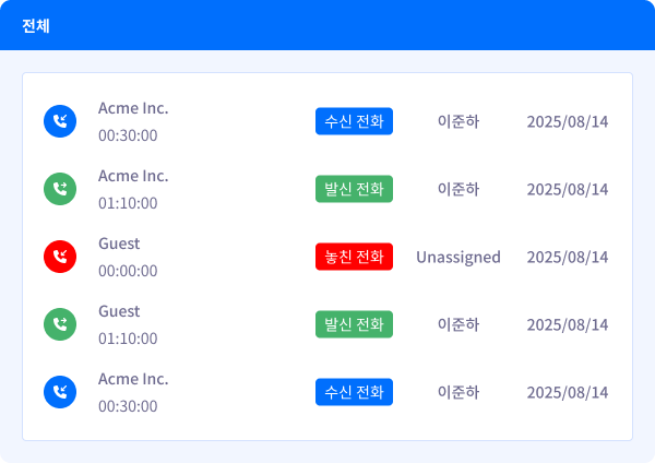 - 모든 통화 내역과 메모는 고객별로 자동 분류하여 실시간으로 저장됩니다.